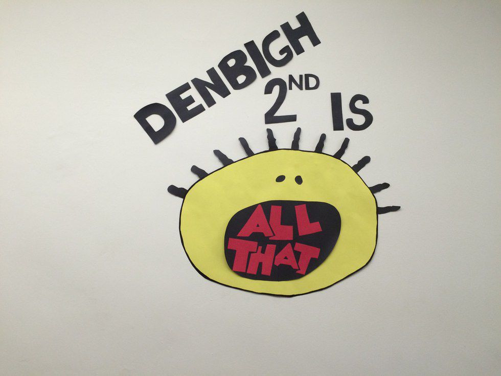 The ninties are all that on Denbigh second. Two super-fly things on this floor are a colorful Tomogotchi and giant paper Gameboy, made by customsperson Isabel Plakas. Shoutouts to Denbigh first and third, which have Legally Blond and dragons respectively!