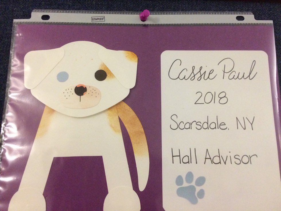 HA Cassie Paul said the dog theme had seemed like the obvious choice. “I picked dogs because I have a dog,” she told the Odyssey. Cassie's dog, Charley, even has her own paper dopelgänger. Bonus points for coordinating with Rock 1st 1st, whose theme this year is cats.