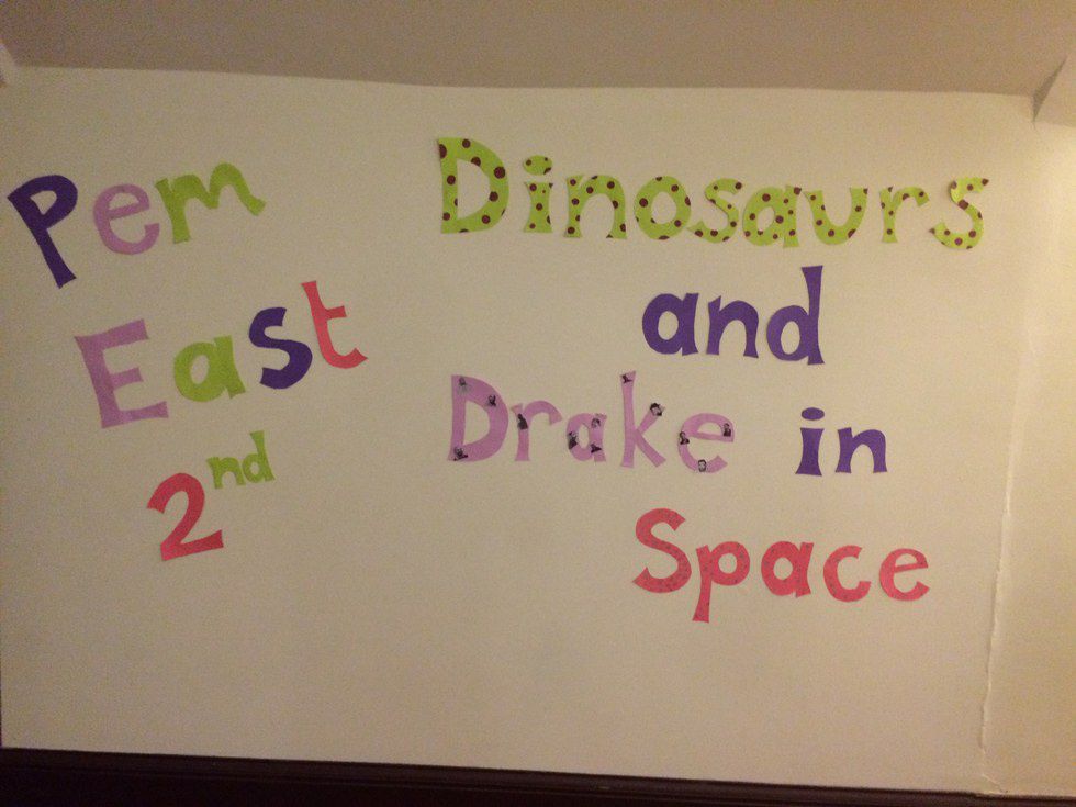 HA Maggie Alvarez said the idea came to them in pieces. First they had wanted to do space. And they knew they wanted to incorporate dinosaurs, since Pem East second had dinosaurs last year. They also wanted to incorporate Drake into the floor to make it truly unique. "It started off as ironic," Maggie said of their love Drake, "but then it became unironic." The floor is peppered with hanging stars, print-outs of Things Drake Do tweets and Drake-related memes, and even a blow-up T-rex. This hall is truly an instant classic!