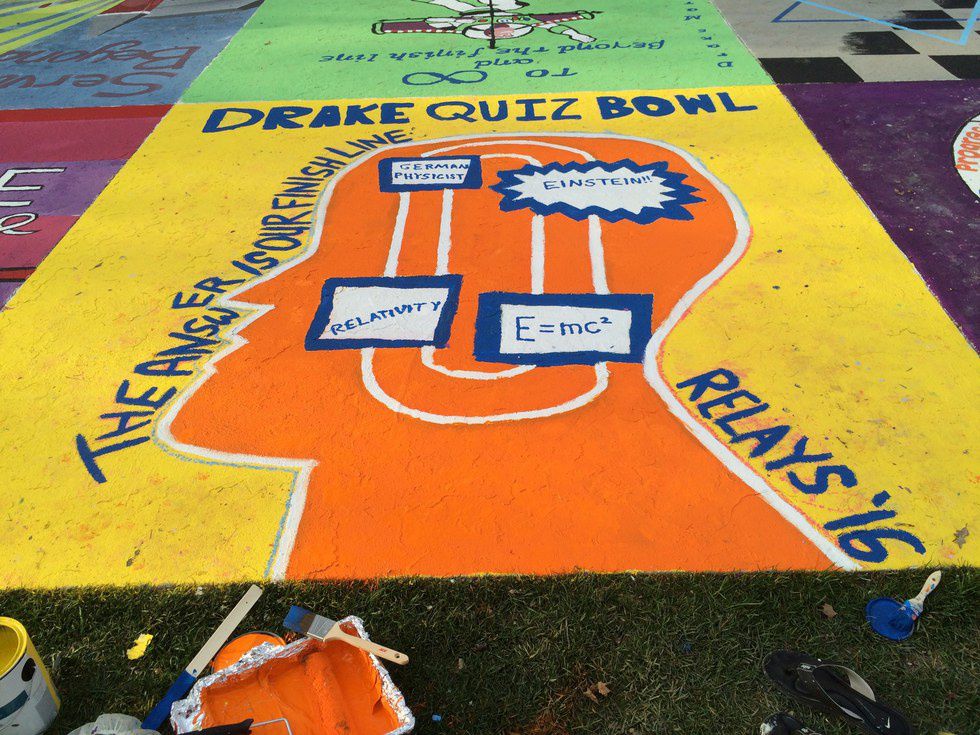 It’s inevitable—every year at street painting, painted street ends up looking much better than it did before. Part of it is the incredible designs that student organizations come up with, and part of it is just getting a fresh coat of paint over last year’s fading, cracking masterpieces. Each individual square is completely unique, and the street as a whole is beautiful, ready to kick off a new year and a new Drake Relays.