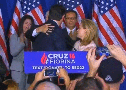 Yep, that's no article from the Onion, following Ted Cruz's announcement to withdraw from the race, he went to hug his dad and repeatedly elbowed his wife and... punched her in the face. If Ted Cruz isn't hated enough by literally everyone, this sealed the deal. It summed up his irksome personality in one painful moment of awkwardness.