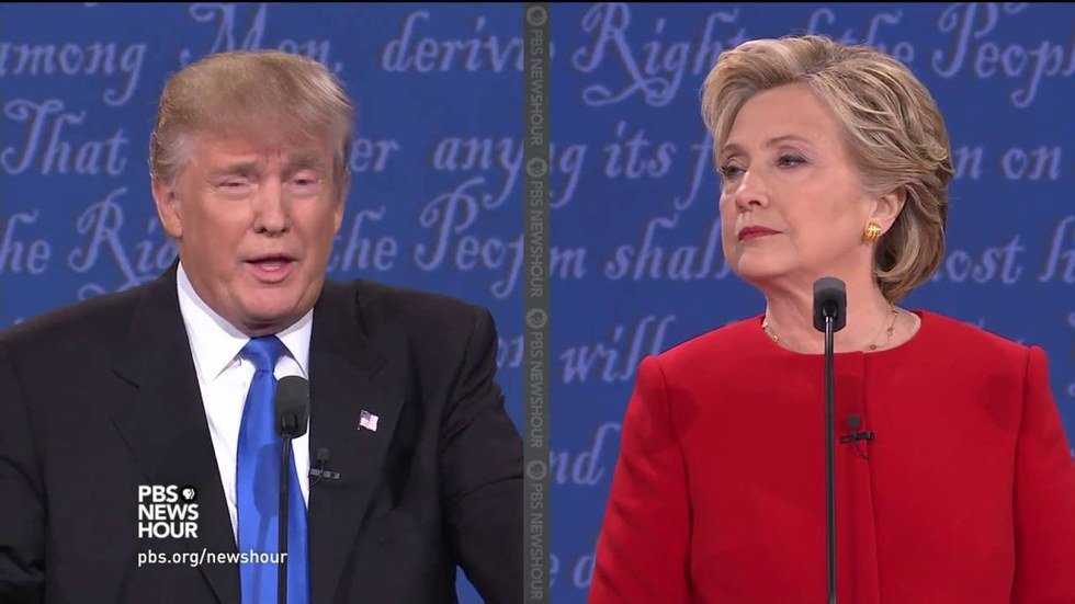 Anyone looking for a thoughtful, informative debate last Monday night received anything but if they tuned into the First Presidential Debate between Hillary Clinton and Donald J. Trump. Anyone looking for a good laugh, however, was successful in their search. It didn't take long for conspiracy theorists to take to the internet to cite the subliminal messages from the candidates that we probably totally missed (in our defense, Donald Trump's salty AF facial expressions were just too much). Did you notice any of these itty, bitty details?