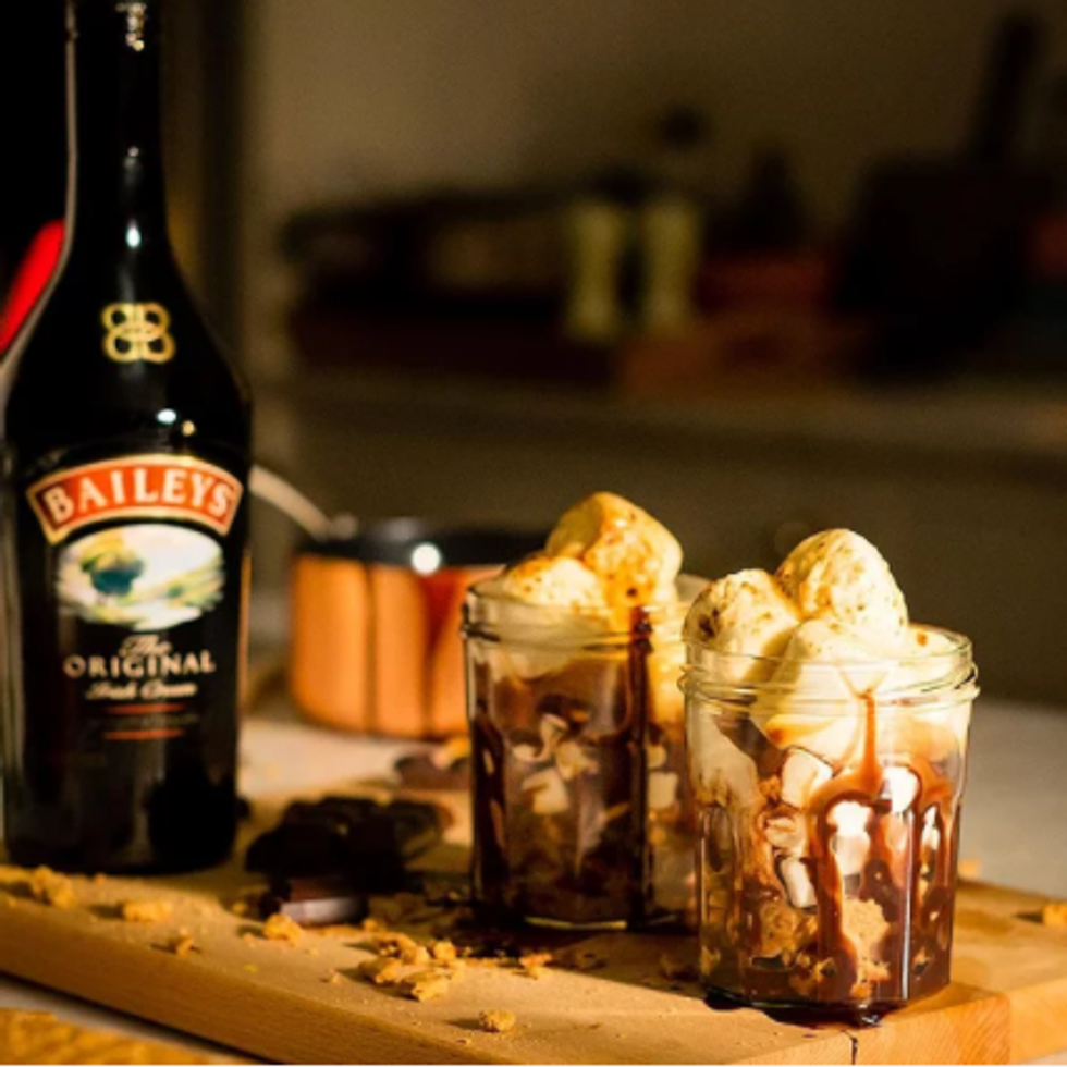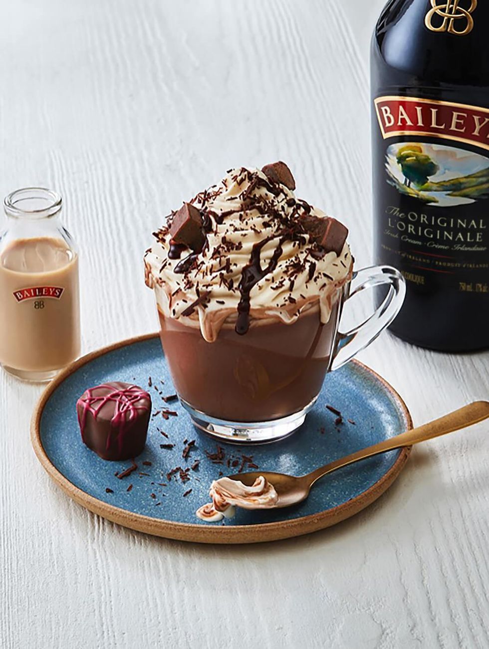 Baileys Irish Cream is a liqueur made with whiskey, cream, and a cocoa extract. Many people drink Baileys straight over ice, or use it as a mixer in shooters, martinis, and Irish coffee. Some people (including me) even enjoy Baileys in hot chocolate or milkshakes.
