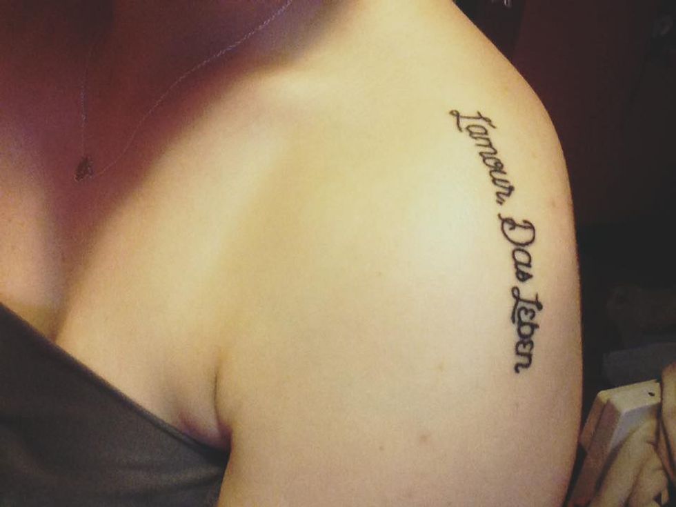 My aunt told me this when giving me some Euros for my birthday to take on the trip, (our last night in Paris was my birthday so that was pretty great). I fumbled around looking for a souvenir that I would never ever get rid of and it really stumped me and many others to whom I explained my situation to. The group of people who I was traveling with all piled into a bus to Traube Tonbach, a 4-star hotel located in Baiersbronn, Germany, when one of the girls made a comment that it “would be so amazing to get a tattoo on this trip”. That’s when I turned around in my seat so fast with a HUGE smile on my face and agreed. So thank you, Jess, for your amazing idea, and Ashley, for coming with me. I ended up getting “L’amour, Das Leben” tattooed on me in Strasburg, France. L’amour is love in French, and Das Leben is life in German. I really took “never get rid of” incredibly serious.