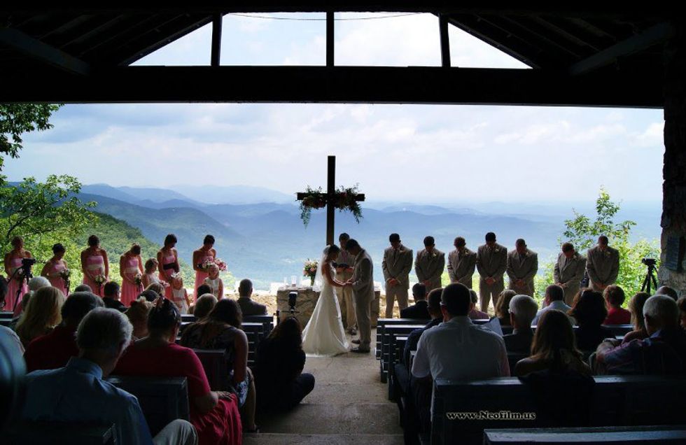 The Symmes Chapel, also known as Pretty Place is a beautiful mountain chapel located in the YMCA's Camp Greenville. The chapel has an incredible view of the blue ridge mountains that would set the perfect backdrop for any wedding. For a two hour time block it costs $924 to rent the chapel.