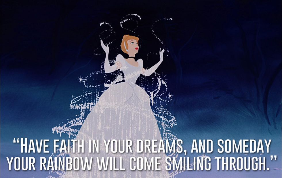 4. "Have faith in your dreams, and someday your rainbow will come smiling through." - "Cinderella." Always have faith in your dreams, and keep pressing forward, your breakthrough will come.