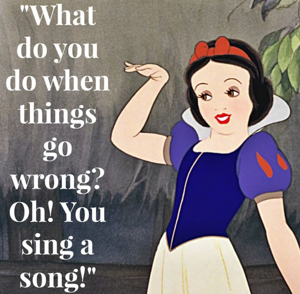 5. "What do you do when things go wrong? Oh! You sing a song!" - "Snow White and the Seven Dwarves." Don't forget to take a break. When everything seems too much to bear, take a minute. You can sing a song or "dance it out" if you have to, just take 30 seconds to do something fun or silly to take your mind off of everything, then get back down to work.