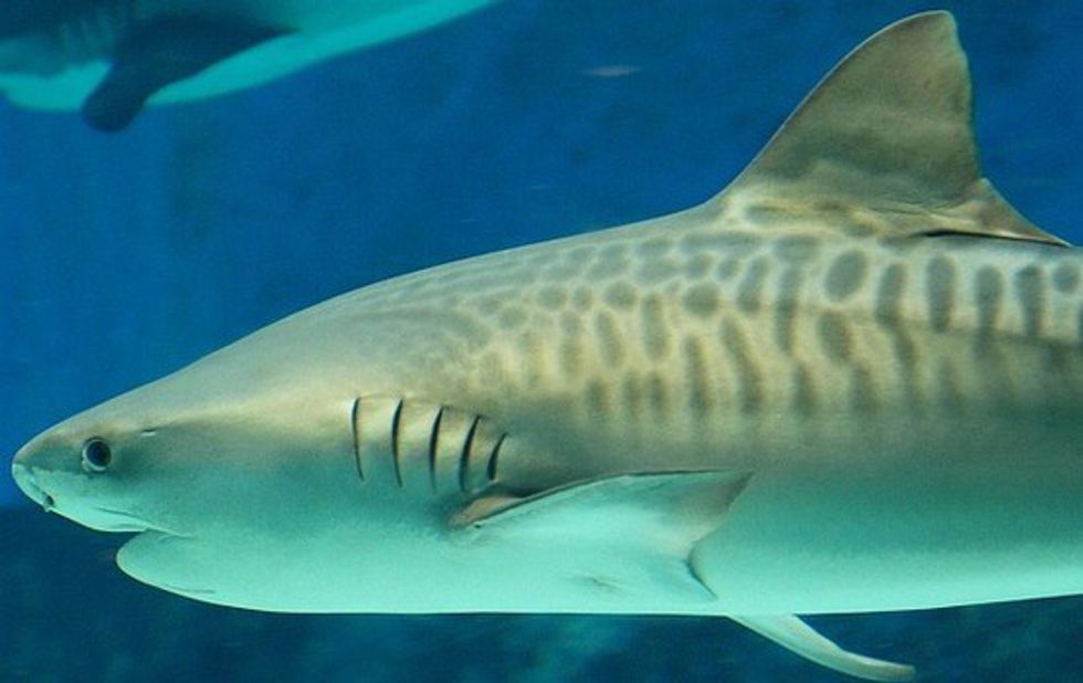 The tiger shark is a relatively large macro-predator, capable of attaining a length of 16 feet and 5 inches long, they can be found in more tropical and warm waters. These sharks are nocturnal hunters who live on a diet of a vast majority of sea life. They are apex predators and have a reputation for eating literally anything, they are reported to be responsible for a large percentage of all fatal shark attacks. They are second on the list of recorded bites on humans, second to the great white. These sharks are considered a near threat species due to finning.