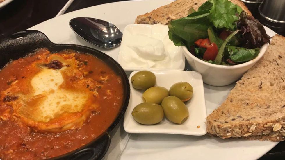 Shakshuka is a very well known Israeli breakfast. It is made up of fried eggs, tomatoes, feta cheese, etc. This particular type of breakfast is served in a skillet. Now, you may look at this dish and it might look very unusual but honestly, this type of breakfast is the best kind. I normally like to have an Israeli bagel with this dish because it fills me up.