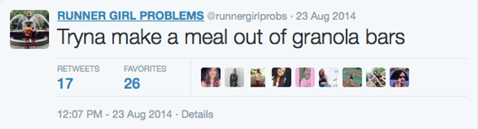 It seems obvious, but here's the catch: there will be times when you will live off these things. When you have morning sessions, back-to-back (to back?!) classes, then regular afternoon practice, where does food come into play? Stash these things everywhere. In your school bag, in your practice bag, locker room, dorm room, the list goes on and on. College is hectic, time is precious, and your body needs the energy. The good news is every flavor seems to have chocolate coating. Win-win! - Reusable water bottles.