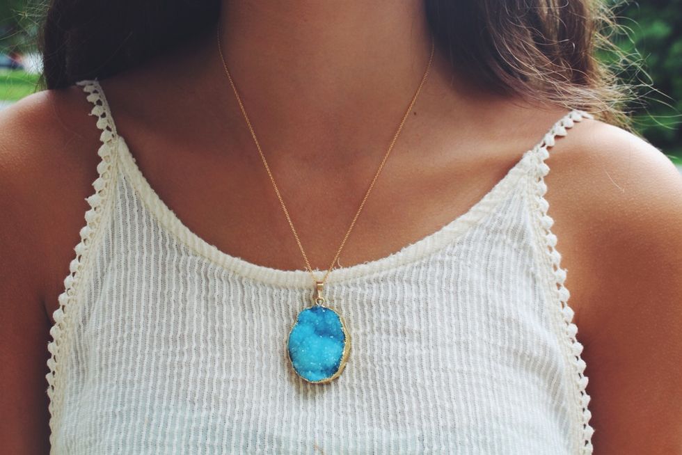 You can actually buy anything druzy stone right now and look trendy as heck. The stone is bold and beautiful, enough to notice, but not enough to scream for unwanted attention. The options are limitless. Any kind of jewelry you specifically need right now? Necklaces? Rings? Bracelets? Earrings? Druzy will do just fine, thank you.