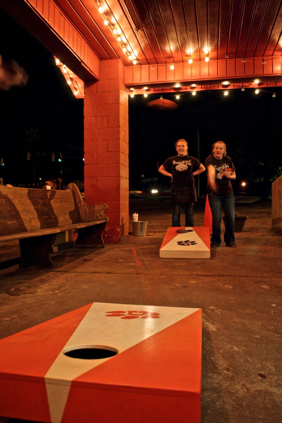 Suggested rules: If the other team gets the corn bag on the board, it's one drink. If you get it in the hole, it's three sips to equal the three points it is worth. If you don't get any of your corn bags on, you have to finish your drink.