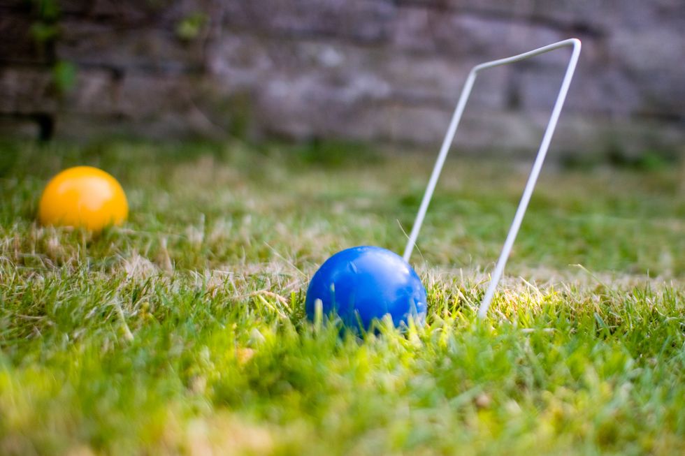 There are two suggested ways to make croquet into a drinking game. The best rule is to shotgun a beer and see who can do the best on the course. The other way is that the person must hold onto a beer the whole time during the game. If they don't hit the ball through the next spot, they have to take a drink.