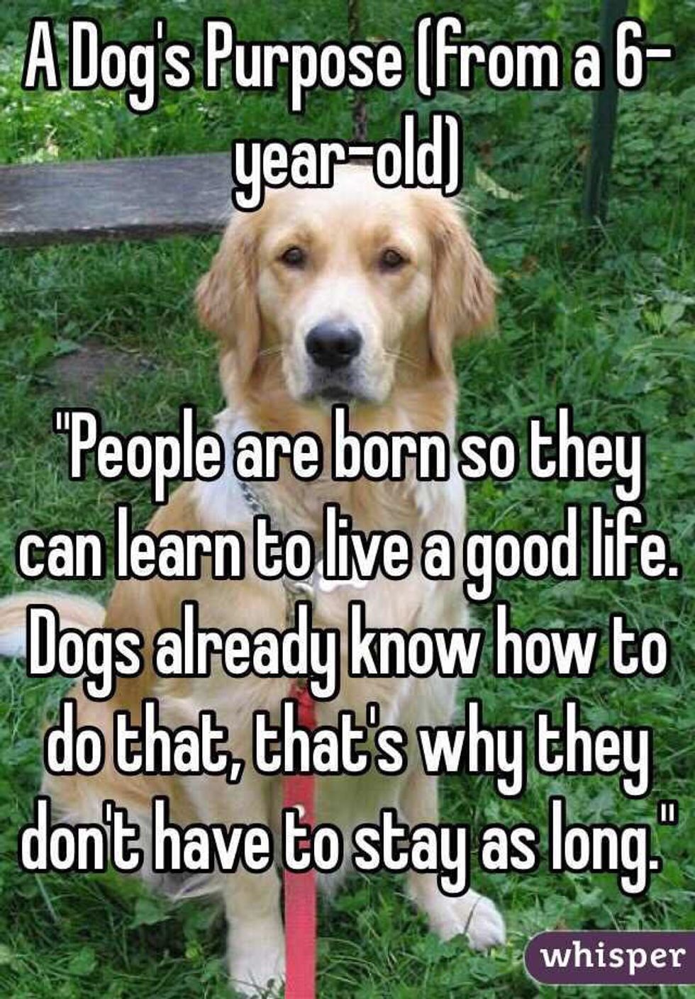 "People are born so they can learn to live a good life. Dogs already know how to do that, that's why they don't have to stay as long."