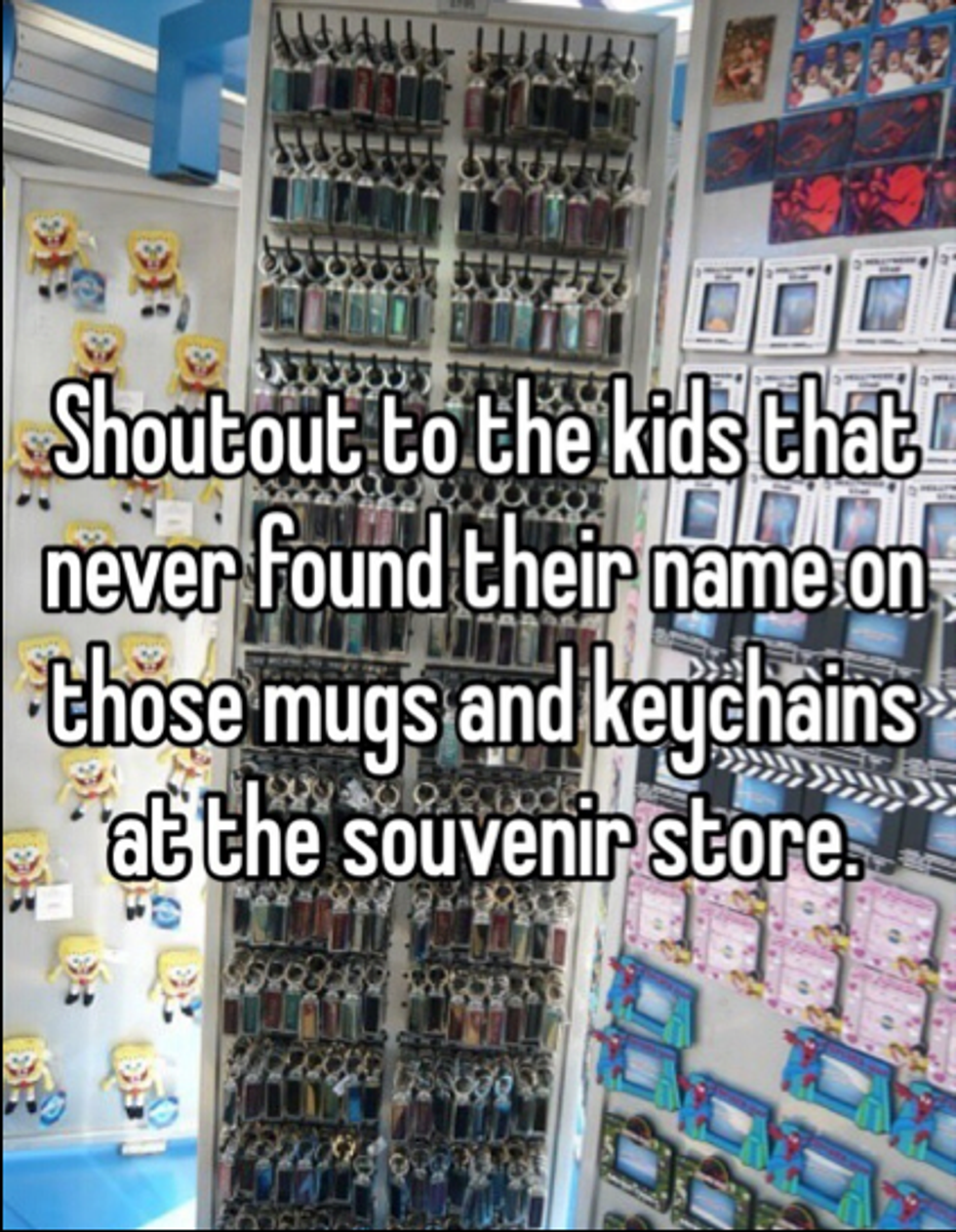 There is nothing like going on vacation with your family and wanting to buy one of those super cool keychains with your name on it. The only problem is that after searching the entire wall (even in letters that do not start with your name) you are left keychain-less and disappointed. Maybe next time!