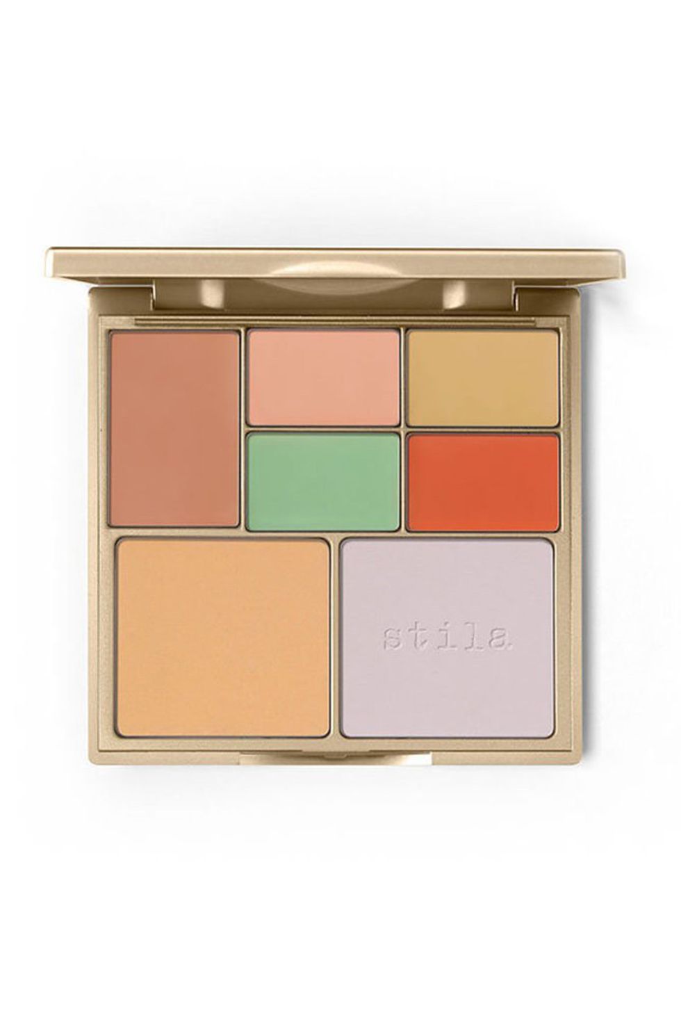 Color correcting cream, liquid, or primer aims to cover any discoloration or blotchiness which appears on the face. For example, color correctors that are green are used to reduce redness, whereas orange color correctors combat dark circles under the eyes. Palettes such as the Correct & Perfect All-In-One Color Correcting Palette by Stila contains several different colors, all of which are useful for neutralizing face discolorations.