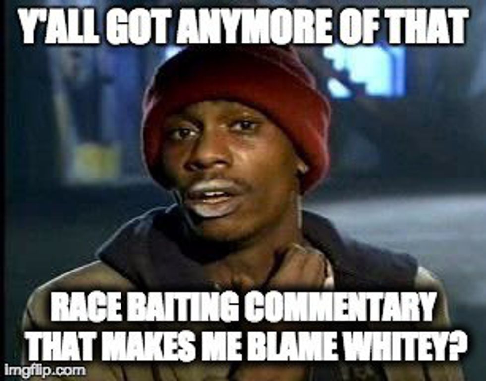 Memes like these are usually made by people who have never been discriminated against because of the color of their skin. They fail to understand how hard it is for a person of color to not be afraid today considering the amount of names that have become hashtags recently. These memes make it as if African Americans purposely make the issue about race without any particular reason. I do not see how Pepe can be more hateful than this.