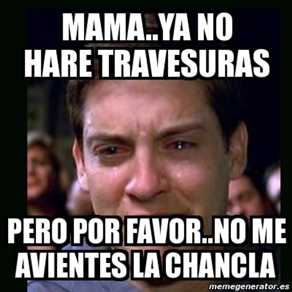 La chancla (flip flop) or el cincho (the belt) weren't just accessories for a Hispanic family, but intimidating weapons used on misbehaving children. Whenever I would misbehave as a child, my mother would only need to say "Quieres pow pow con la chancla!!" my response would be immediately sit down quietly and play with my toys. No one would dare to challenge the chancla or cincho as a child, rather run to their room and hope their mother would go back to watching her telenovela (soap opera).