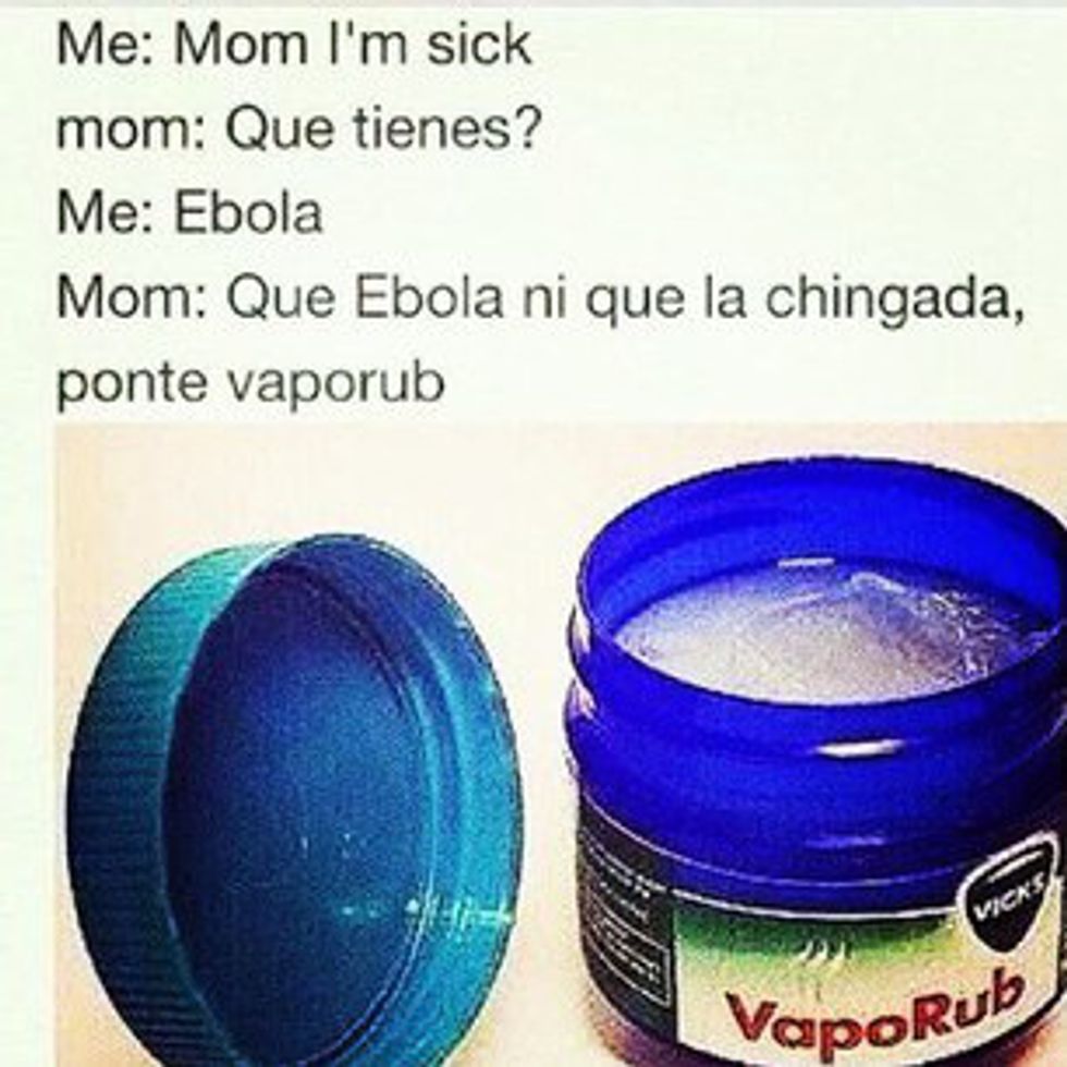 VapoRub seems to be the cure for almost everything in the Hispanic household. You can find VapoRub in all Hispanic households. The cream was a solution to all my problems, whether it was a cold, sore throats, congestion or something else. As a child, I would see my mother frequently apply it on herself when she was feeling sick. You know you are Hispanic if you had to use VapoRub as a child for every symptom when you were sick. Even my grandmother used VapoRub, mostly for sore muscles. My family has taught me to never underestimate VapoRub. Even if I was dying my parents would apply it.