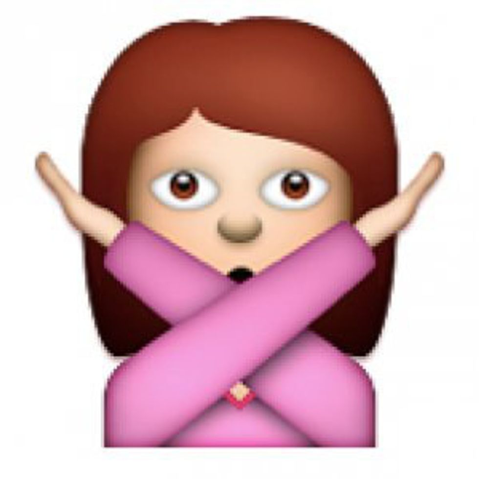 Instead of being a really awesome emoji (like the devil one or the dancing red lady), you could dress up like one of the emojis that just look like people doing weird poses. For instance, to dress up like the emoji below, just wear a long sleeved purple/pink shirt and make an X with your arms all night (or just when someone is confused about your costume).