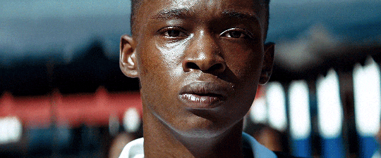 This shot uses the same technique as the last, but to a completely different effect. The beginning of the scene is blurred, emphasizing the surrealness of Paula's sudden kindness and the haze the drugs have left her in. When the shot finally comes into focus, we get to see Paula, looking directly into the camera and at Chiron, saying, "Well, I'm your mama, ain't I?" Even though she is so close to the camera, you can feel the distance between her and Chiron, especially with the following shot of Chiron, looking wary. It's the first moment from Paula where she appears soft after years of treating Chiron poorly, so even though we're allowed to look directly into her eyes, it feels completely disingenuous and dreamlike. It is a shot that is normally used to allow a connection between characters, but is used expertly here to create the opposite.