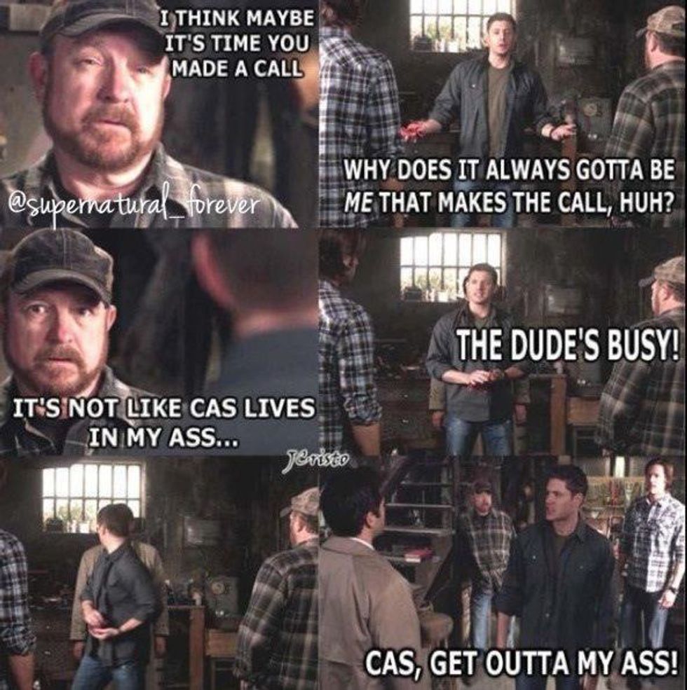 While this could be number one on my list, I put it to number five because the pigeon will always make me laugh. In the episode "Mommy Dearest" Dean is told by Bobby to make a phone call to Castiel because they need help with an investigation. Dean starts complaining about always having to summon Cas and the line, "Cas, get out of my ass," was formed.
