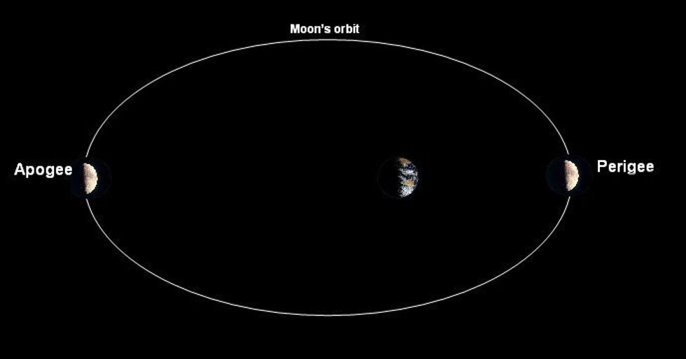 circular. The Moon orbits the Earth at an average distance of 384,400 km, but at