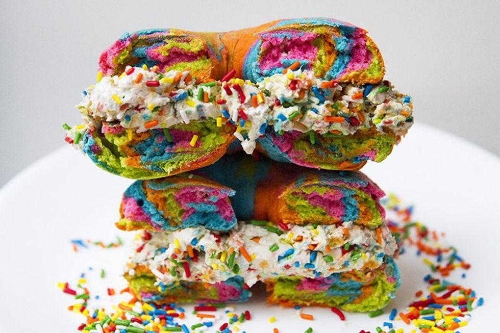 The rainbow bagel took the internet by storm in 2016. This isn't your ordinary bagel, and just by looking at it, you can tell that it's as sweet as it appears.