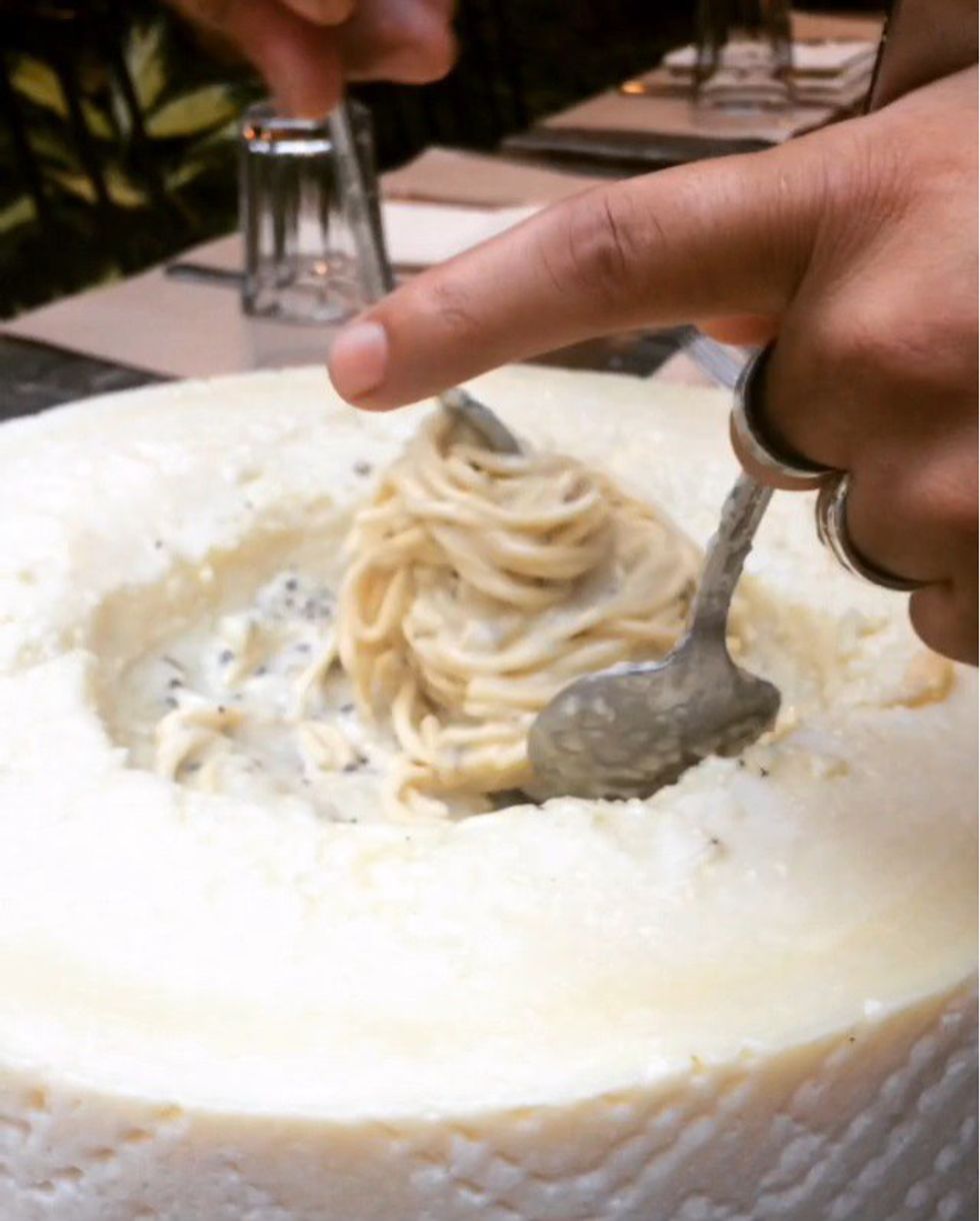 Cacio e pepe is an Italian dish served at the restaurant Cacio e Pepe in the East Village. It features tonnarelli pasta, pecorino cheese and whole black peppercorns. The allure of this dish is how it’s prepared at your table. Hot pasta is thrown into a partially hollowed cheese wheel. Contact with the hot pasta creates a melty cheese coating that could tempt even the most lactose intolerant. The waiter does some intricate pasta twirling with a fork and spoon (watching it was almost therapeutic) and then plates it for you. And of course, you’re viewing this entire process through a cell phone camera because you’re Snapchatting/Instagramming the sh*t out of this.