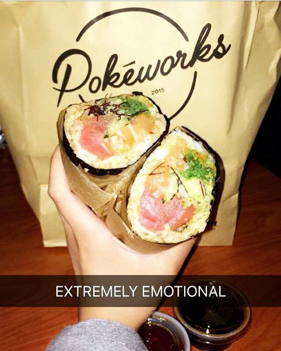 Pokeworks in Midtown is a Hawaiian fast food joint that offers the sushi burrito. The menu features a build-your-own option with different choices in protein, topping and flavor. A condiment bar has different sauces to dip (or drown) your burrito in.