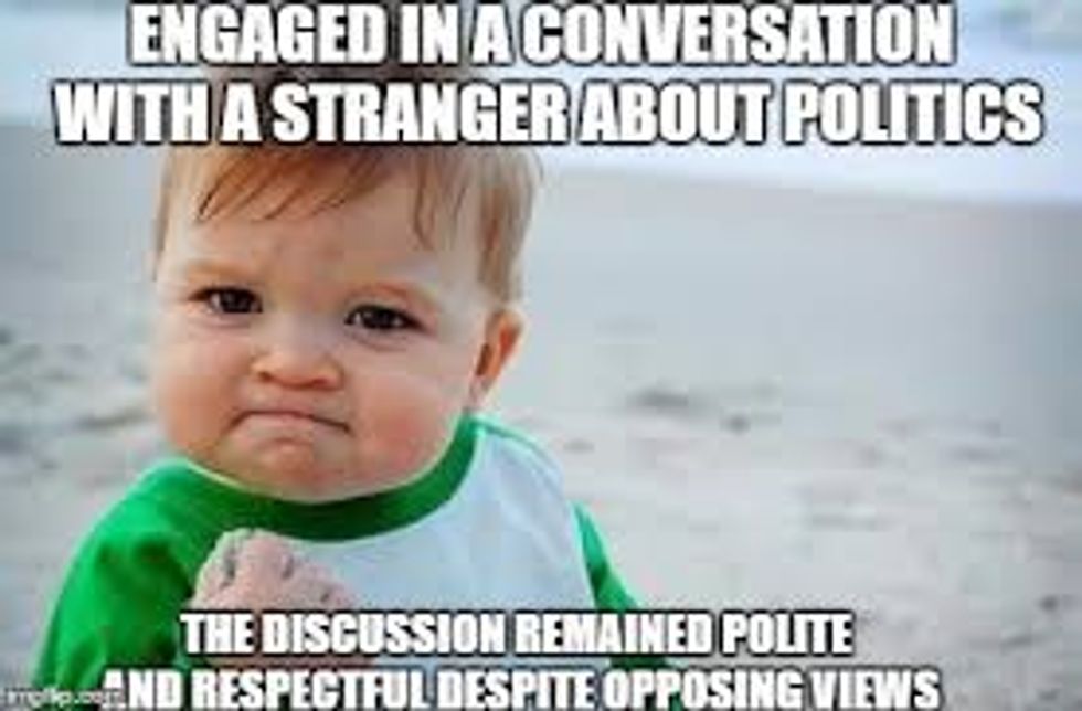 Political conversation is important. Discussing positive and negative aspects of what the government plans to do is a good way to form opinions on what you think is right, and what politicians will gain your vote. But it's also important to step back and look at things through someone else's eyes because there is always something to be gained, whether it be a change in opinion or just the consideration of something different. It is key to realize that everyone has their own political opinions that should be respected, even if they differ from your own.