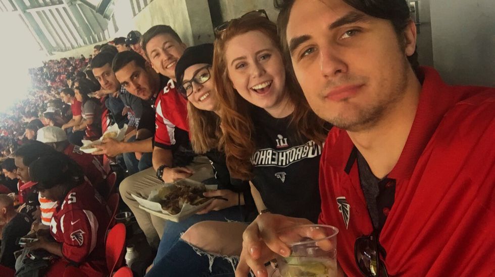 Look we went to a sporting event. You can't see the sport but we went.