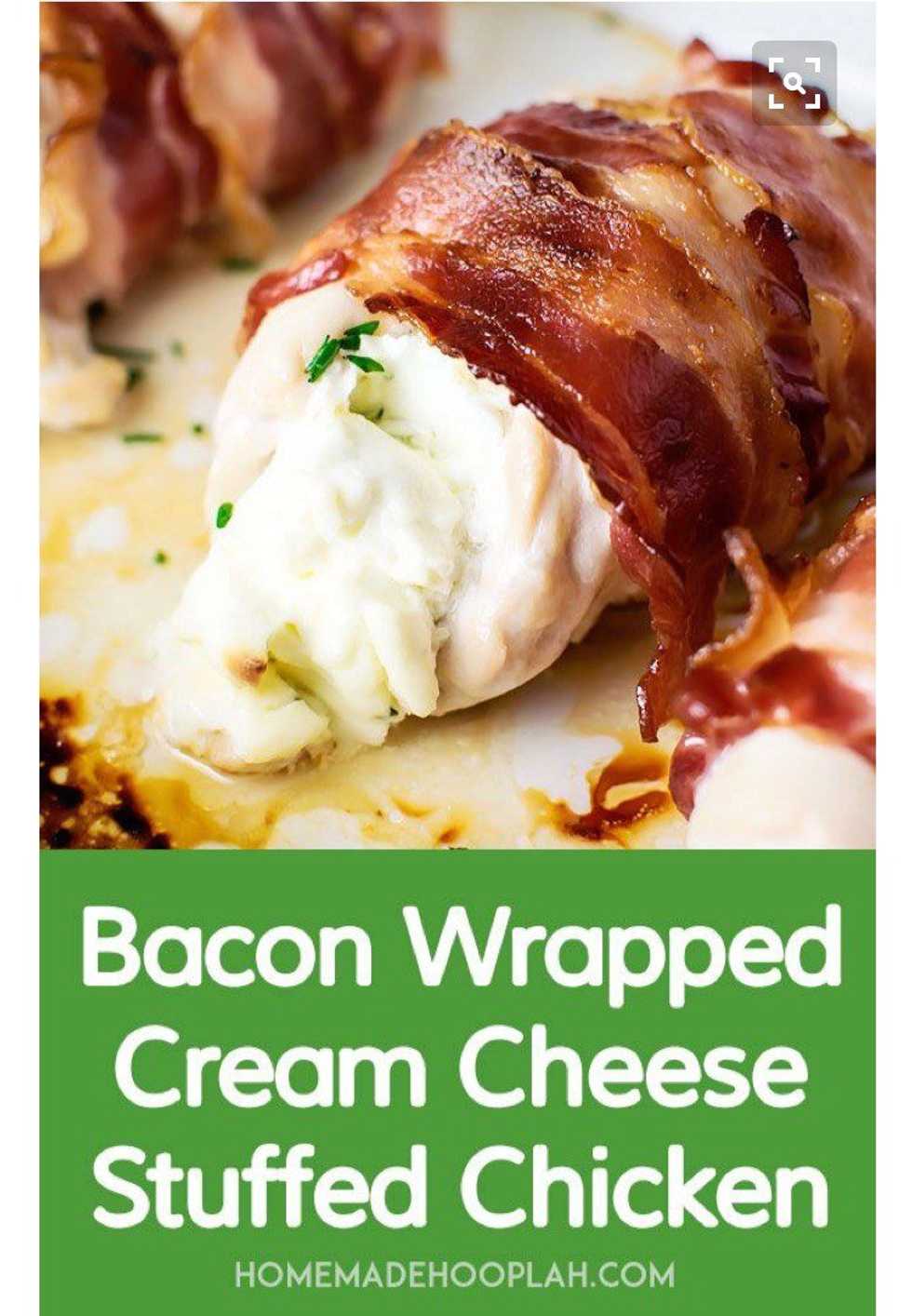 I deviated from the original recipe when I made this dish, and it turned out delicious. All that you need to make this dish are 2 pounds chicken, 12 slices of bacon, 8oz cream cheese, and 1/4 a tablespoon of ranch seasoning. Preheat the oven to 375. Then take a skillet and slightly cook your bacon (it needs to be flimsy so that it can be wrapped around the chicken). Combine the cream cheese and the ranch seasoning in a small bowl. Flatten the chicken until it is about 1/4 of an inch thick then begin to spread the cream cheese mixture on the chicken. Roll then chicken up and wrap the bacon around the chicken. Make sure that the bacon is tucked beneath the chicken so that it is secure. Finally bake for 30 minutes.