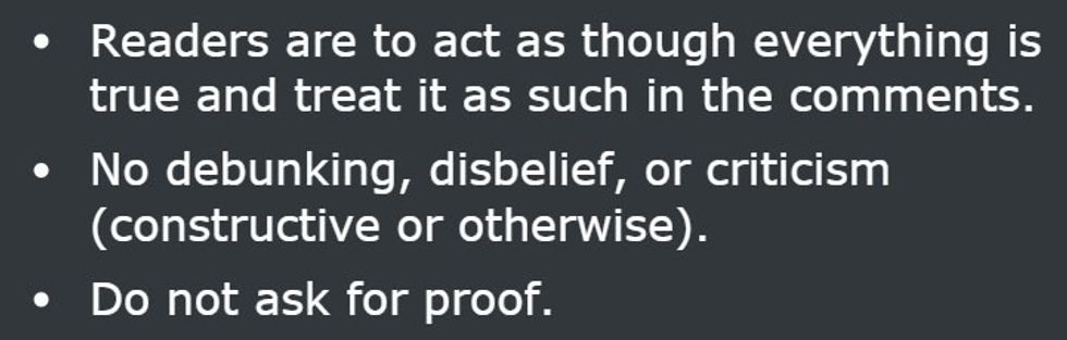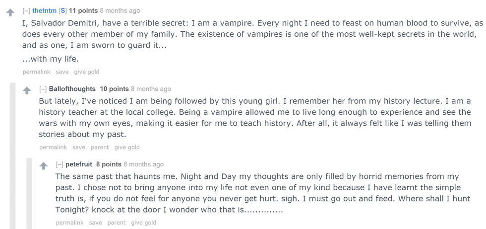 This makes /r/nosleep so much scarier! This also turns posting your own short stories into a fun experience because you have to stay in character when answering others comments.