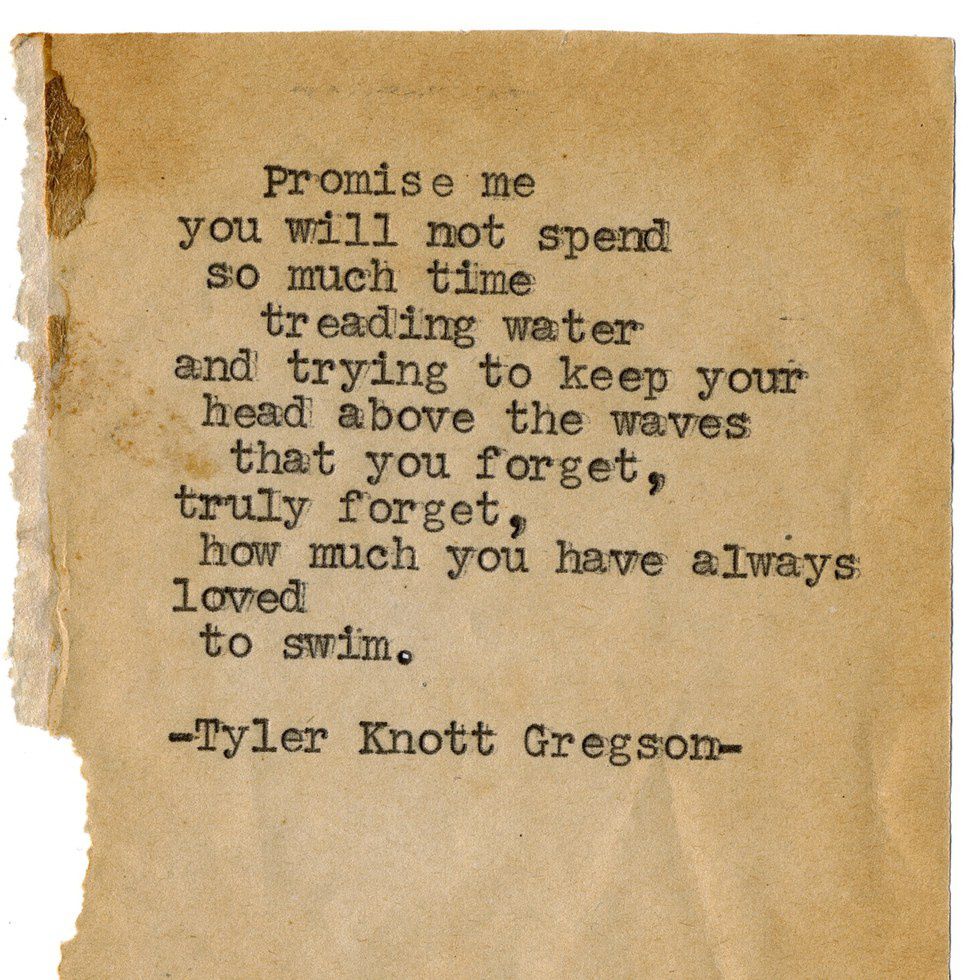 Well-known for his poems typed out on an old-fashioned typewriter (fun fact! You can buy his prints on etsy!), Tyler Knott Gregson is the solid finish to this wishlist. He's in touch with his emotions, but isn't afraid to show his strength, and it's a lesson we could all care to learn.