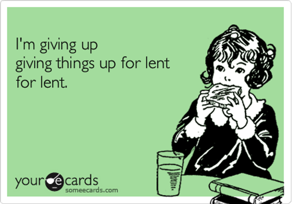 Giving up something for 40 days is a long time and usually it is broken once or twice. But this year, give up something practical that you know you can accomplish. Even if you do slip up from time to time, who cares we're human!