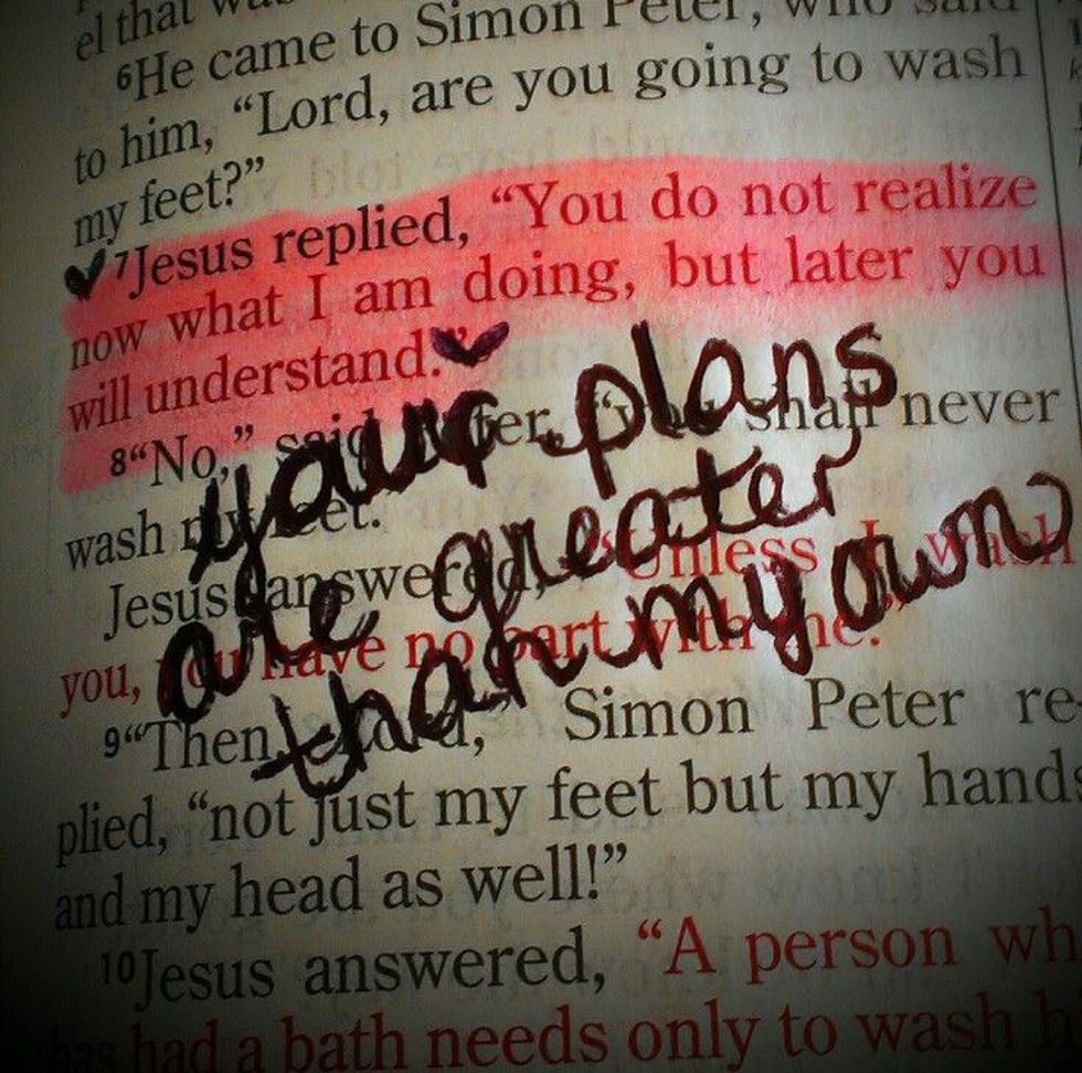 "Jesus replied, 'You don't understand now what I am doing, but someday you will.'"