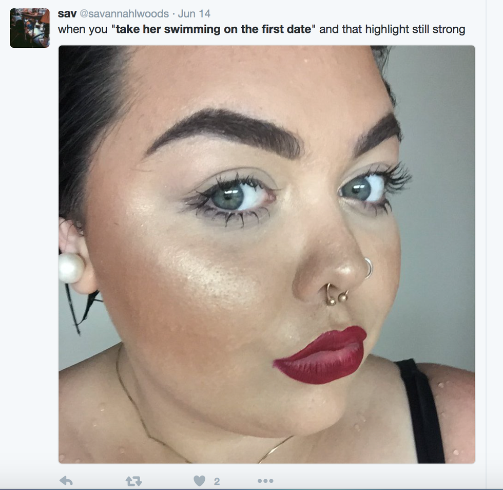 If you love your makeup and he's taking you swimming on the first date, girl, tell that boy bye and run away. He's not into you enough if he has to see what you look like without that makeup.