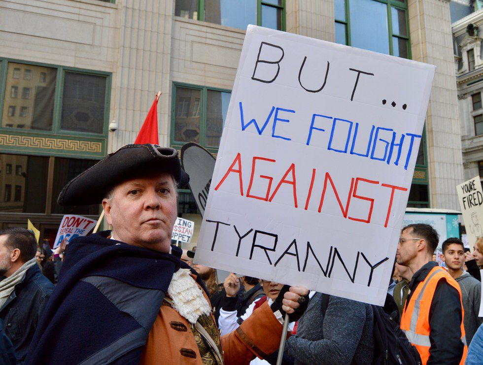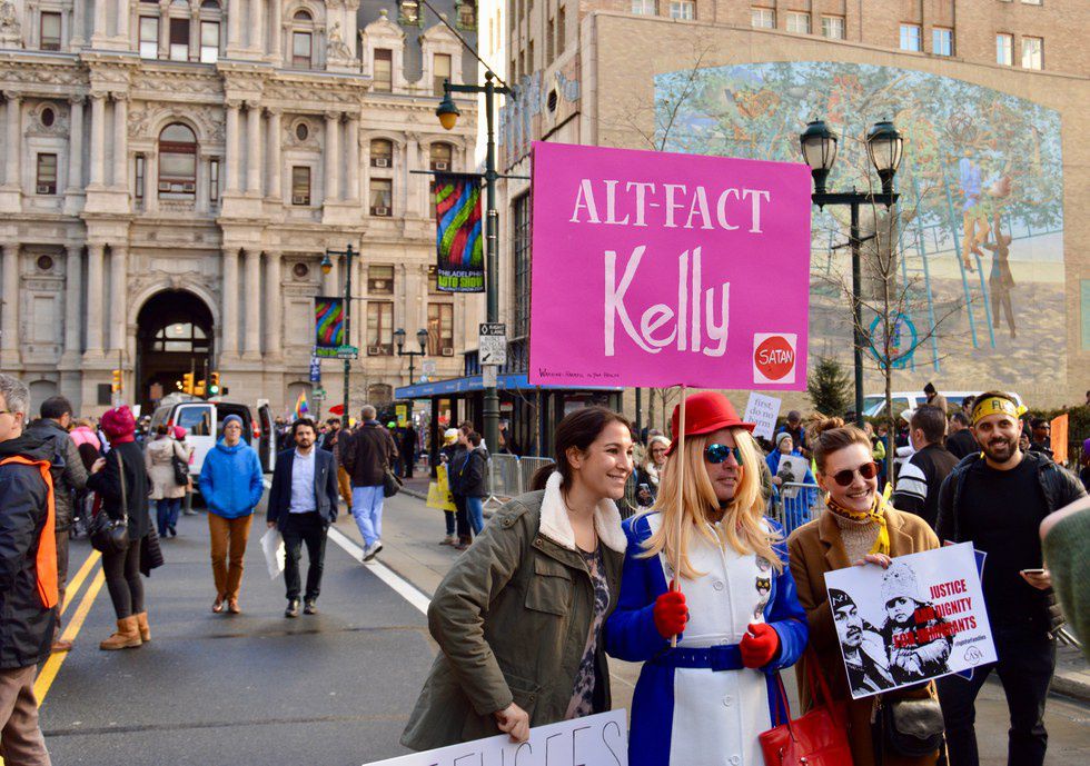 There is no maximum number of protestors (unless specified). The more the merrier I say. If you’ve got a friend with similar convictions, invite them. Despite being swept away in a sea of like-minded people, it can get quite lonely. If you can’t bring a friend, make sure that you communicate with others. If you like someone’s picket sign, let them know it. If you want to get a picture with someone who’s wearing a cool costume (like the man below rocking Kellyanne Conway’s inauguration garb), go for it. It will help the time pass, better your experience and it might even make you some new friends.