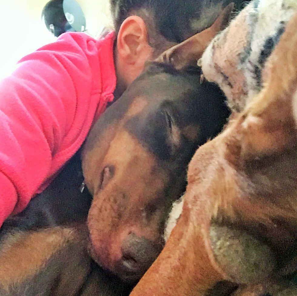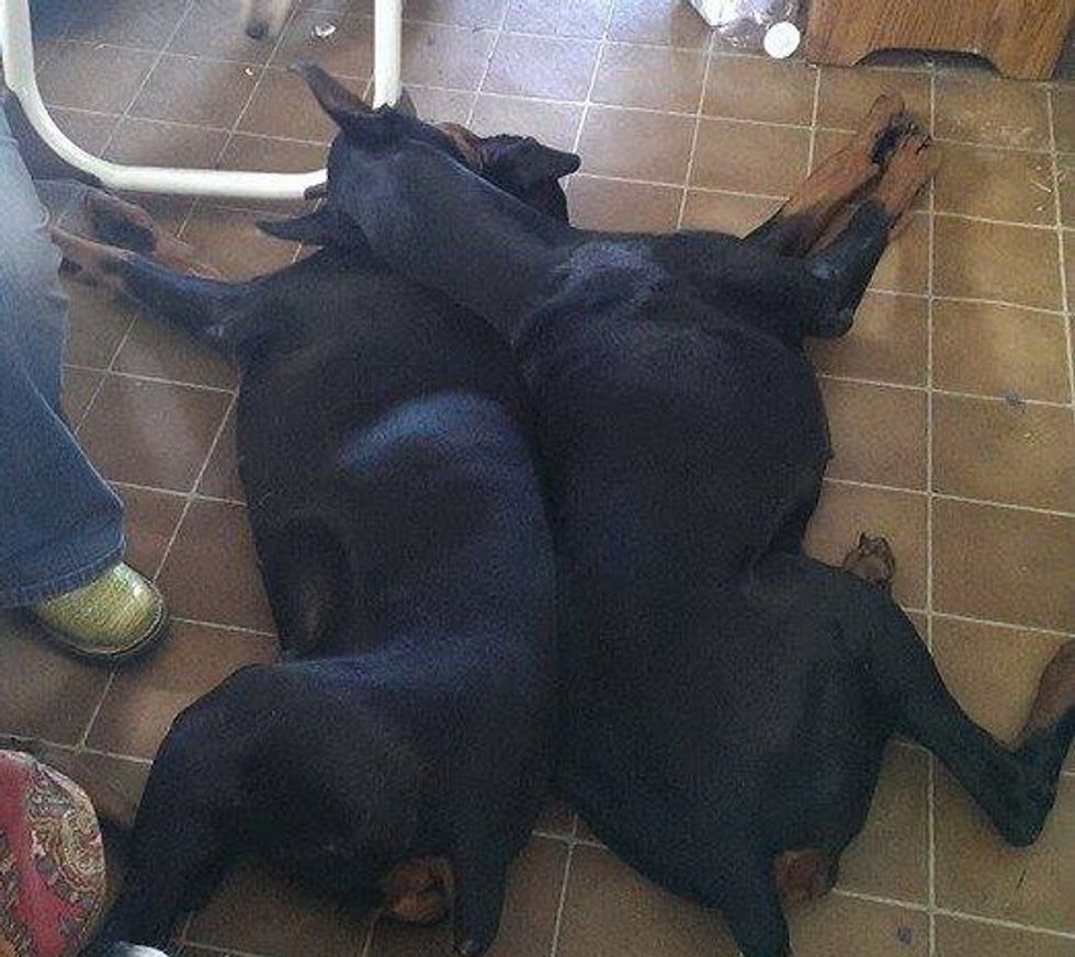 Okay... when it comes to the Dobe in this picture, you have a great example of why they are the best cuddle buddy. Who wouldn't want to curl up next to a big ole' ball of fur? Don't deny it, you can't really "cuddle" with a small dog. If the dog is the size of your head, then what is there to wrap your arms around?