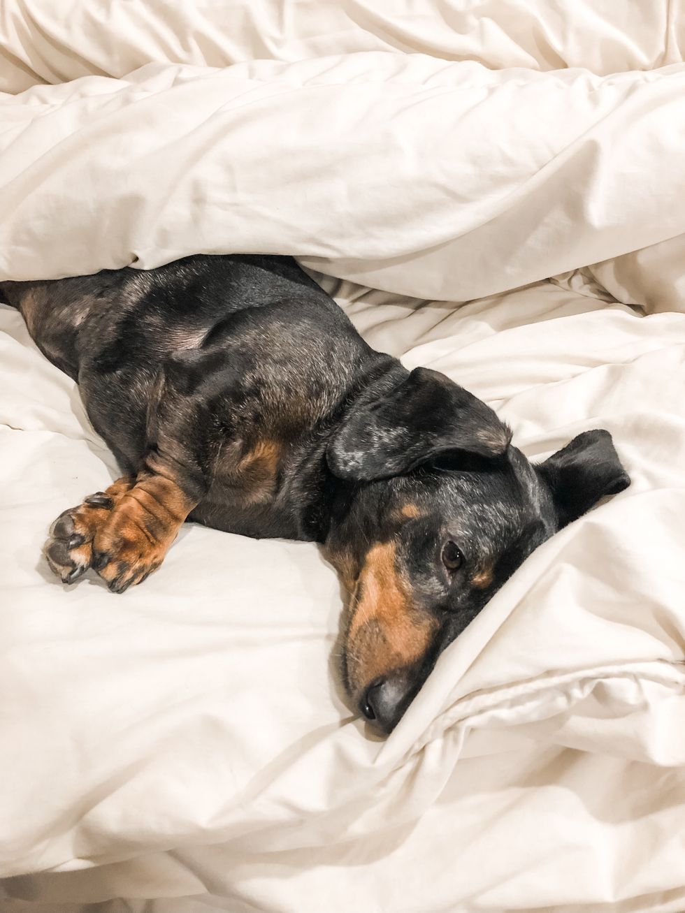Maybe it is the shape of their body that makes it so easy to curl up. Or maybe it is the fact that they constantly need attention and want to be close at all times. Either way, dachshunds know how to snuggle. They just fit in close to you like a puzzle piece. They are small enough to not take up too much room and their long bodies give you so much warmth; you don't even need a blanket! My dachshund always has a spot between one of us and the couch. If you are in her spot, she will nudge you until you move.