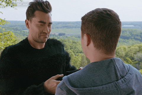 Let me note that this needed a video. The gif wouldn't do it justice. But, just... THIS. This is proof enough that David loves Patrick, and it's such a tender way to MAKE UP FROM A FIGHT. You can also chalk up their relationship to David being concerned Patrick would like someone more and LETTING HIM TRY, just to have Patrick come over and hug David and tell him it felt weird. Not to say they should have ever broken up, but it seems like these two have acted like rational people that know their significant other is only human and makes mistakes.