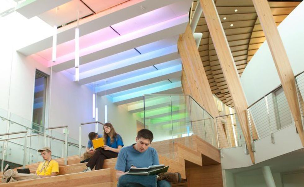 Anyone who claims they aren’t excited for the newly (and majorly) renovated rec center is clearly out of their gourd. I mean this baby has got it ALL. Let’s go through the list starting with a ROCK CLIMBING WALL. Not just that, but also a climbing wall in the dive tank (yeah, the new natatorium with a dive well, active shallow water area, and an eight lane competition pool). There’s also a MAC Gym for floor hockey and soccer, two racquetball courts, three multi-purpose rooms, six basketball courts, a sauna, 17k feet of weight and fitness space, study areas, and a patio for concerts and other outdoor events. Not to mention, the building is plain gorgeous.