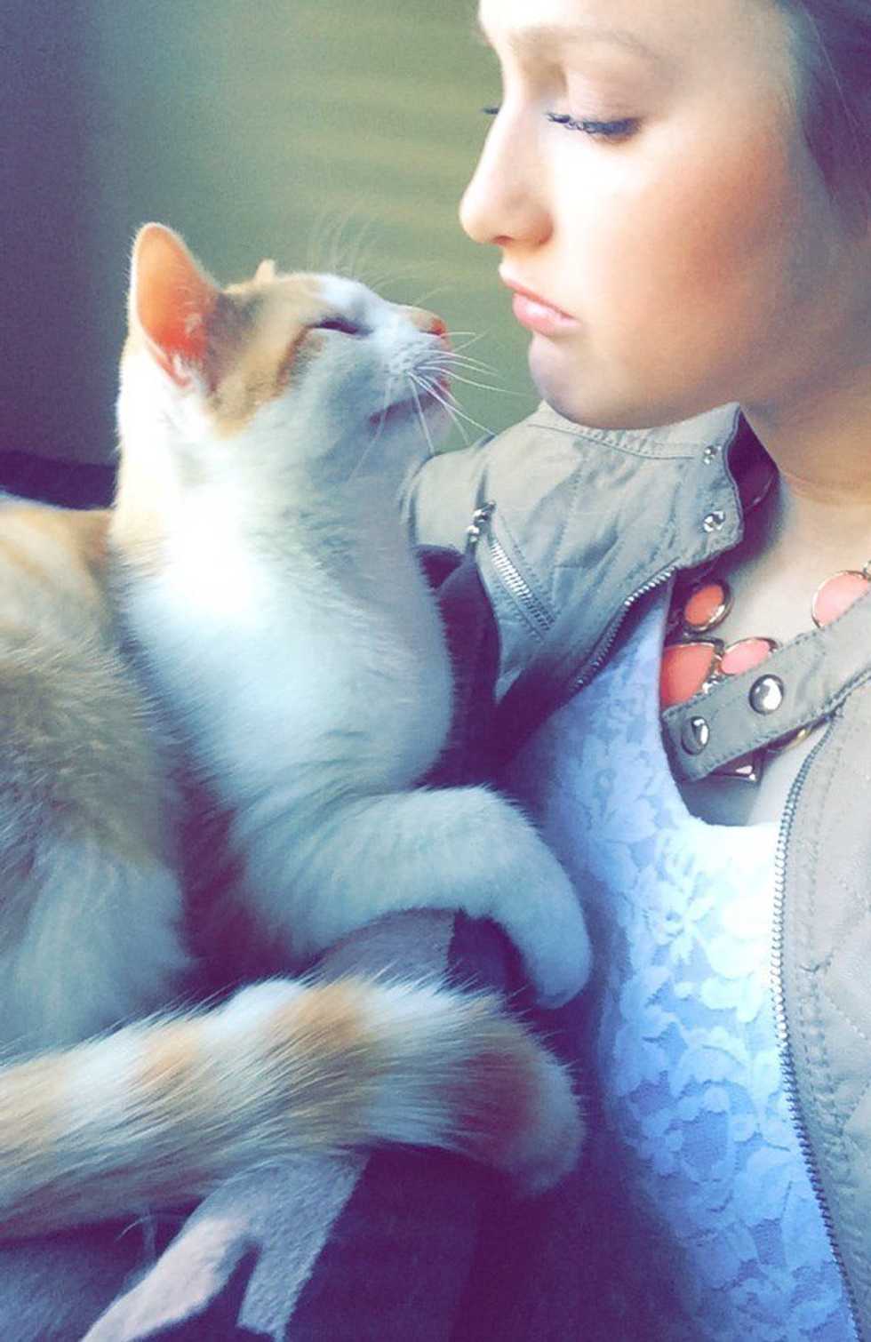 Why I'm a crazy cat mom, reason number two – I have more pictures with my cat than I do with my own boyfriend. Now that's actually saying something, I've been dating my boyfriend for five years….Should this be in The Guinness Book of World Records? Yes. I foresee many framed pictures of Bentley and I in the near future. Lastly, no one can compete with our selfie game, exhibit A: