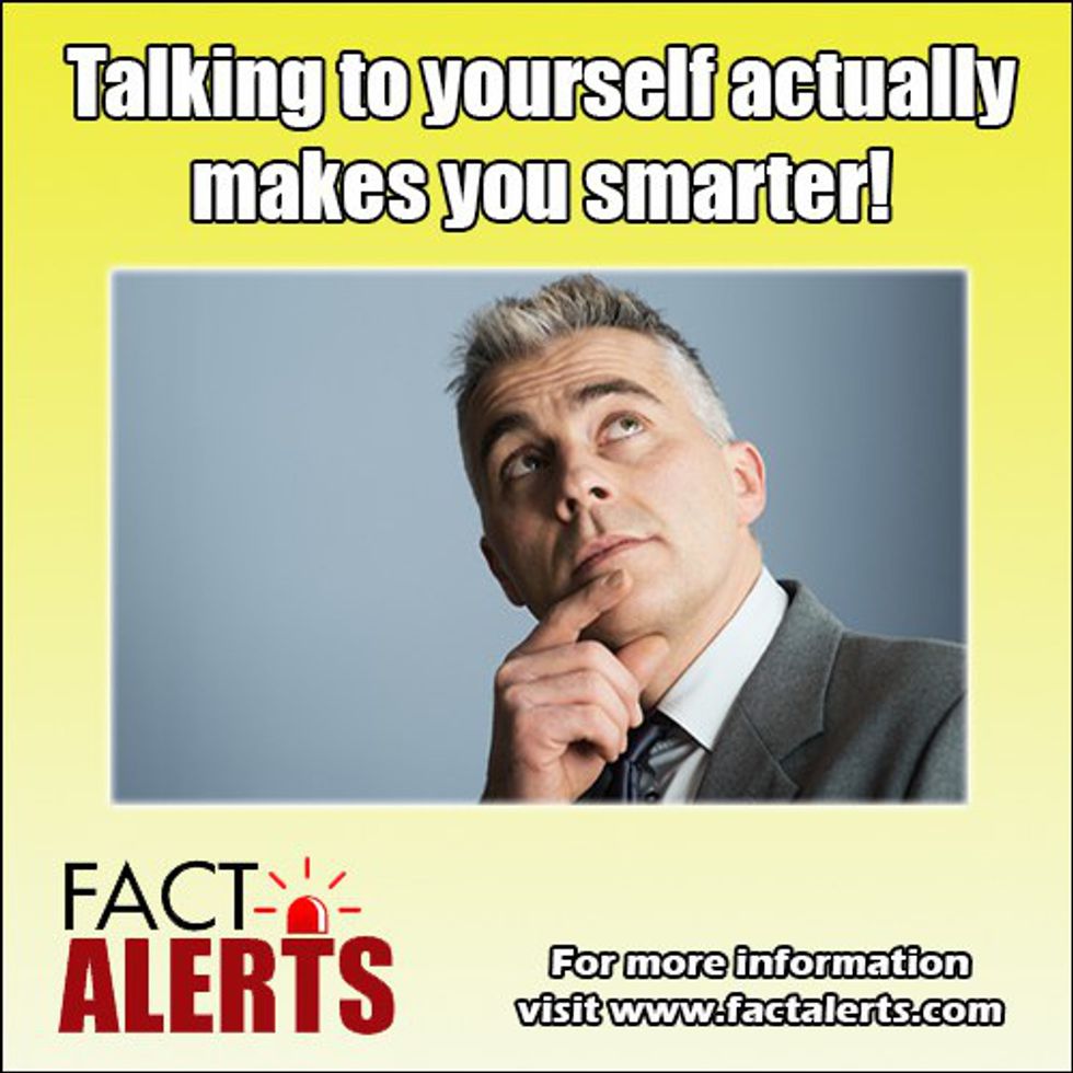 I did not know this myself until I read this said photo. Then I actually believe it is the reason my grades got better over time this year. When I don't talk to myself my mind will shut off and make me do stupid stuff. So I am satisfied this fact is accurate.