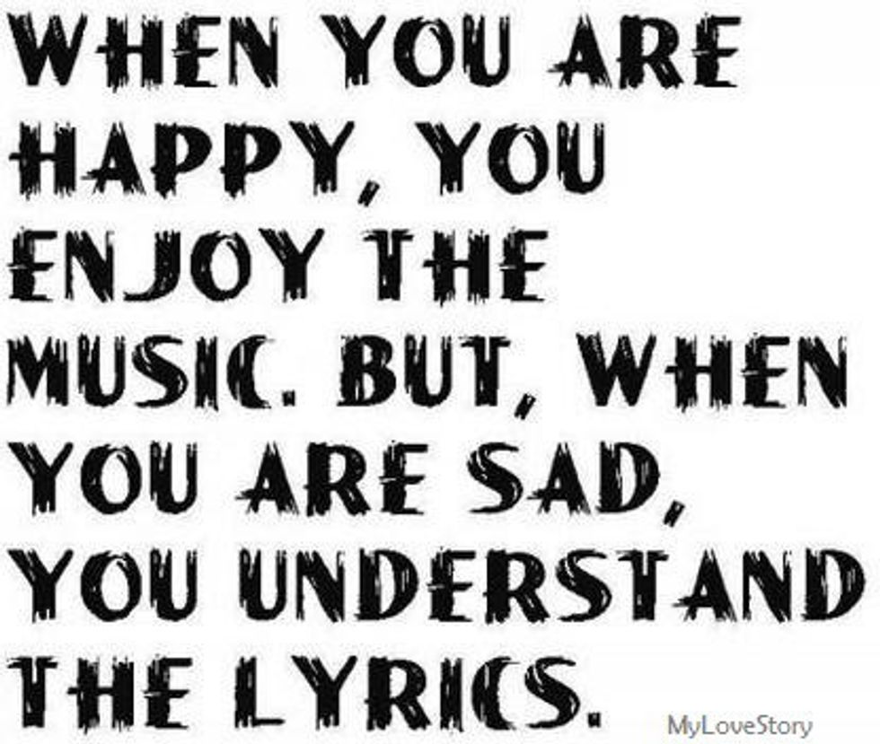 The lyrics in a song are made for singing along. Sometimes we just memorize them so we can jam out with our friends; other songs are different. There is a line in a song that stands out to us. Either we can relate to it or it touches us in some way. It seems like when things end with a guy, all I hear in the music are the words about broken hearts and sadness. When I'm having a good day and the sun is shining, I hear the happy lines in the music. This is because music is relatable. It can't tell how you are feeling like a friend could, but it doesn't need to do that. The connection with a song happens emotionally. Sometimes just letting the words of a song say how you feel is just what you need.