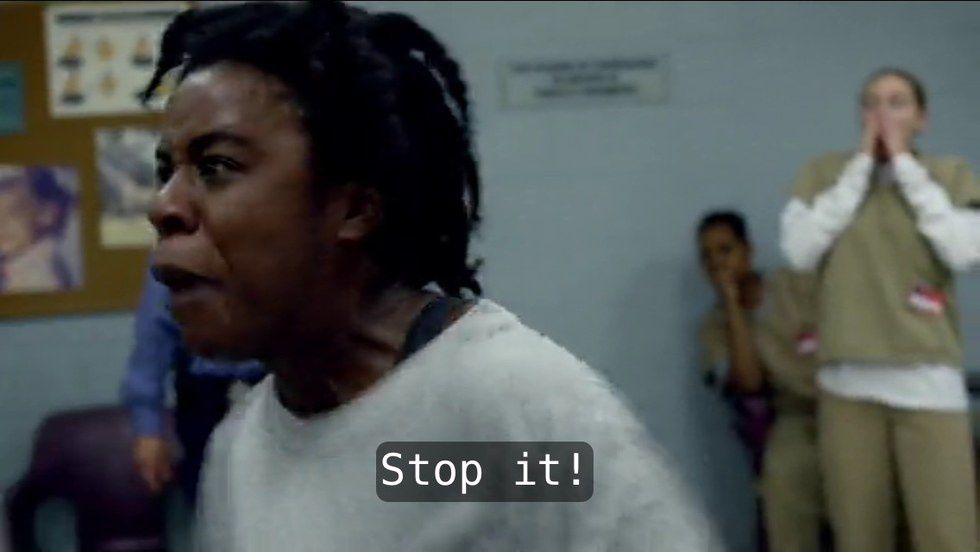 This was definitely the most difficult, devastating thing that happened in season four, in my opinion. Right when I thought everything was going to get better, the girls are all united, literally standing up for themselves, all the guards come in and suddenly Poussey ends up on the ground lying helpless under Bayley, and she loses her life.