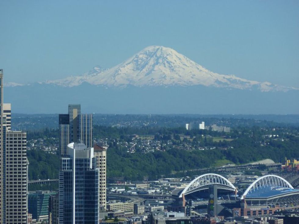 My mom took this picture on our first trip to Seattle from the top of the Space Needle. It's Mt. Rainier, located only 54 miles from Seattle. This is just one of the beautiful sights to see in Seattle. There's the lovely cityscape also seen in this picture, the Pacific ocean which can be seen at Puget Sound, and more.