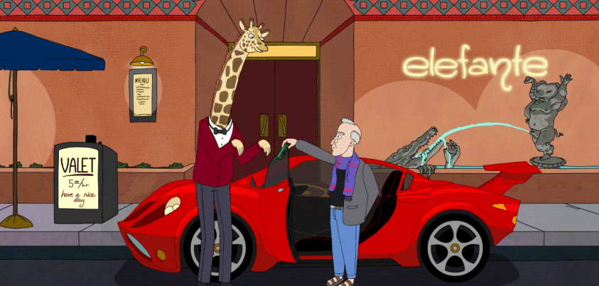 Or the giraffe working as a valet...