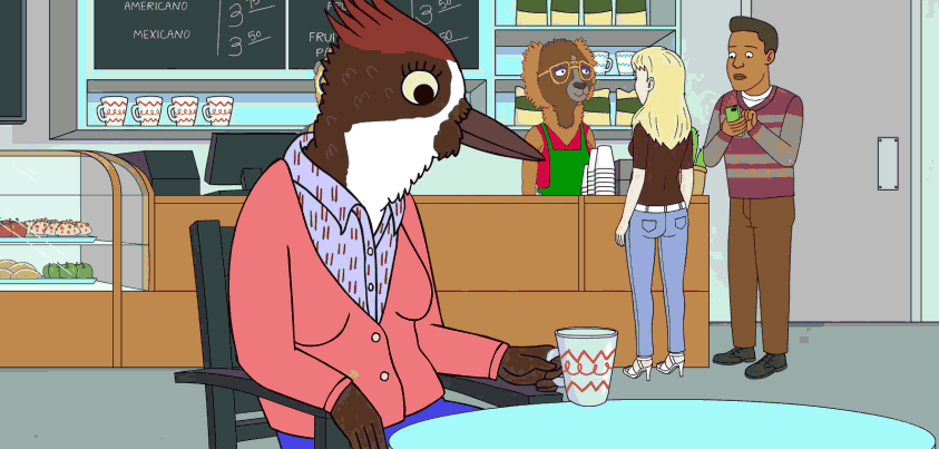 With guest star cameos such as Daniel Radcliffe and Henry Winkler, the series plays with modern Hollywood influences to make it relevant and fun. There are references geared towards millennials and Gen X’s alike, such as fabulous puns like LuLuLemming, a dolphin waiter named Marlin Brando, and other background jokes that show how much the creators care about every intricate detail. Kristen Schaal voices Sarah Lynn, Bojack’s former co-star, who grows up to be a Lindsay Lohan-type hot mess who even dates some version of Andrew Garfield as well.